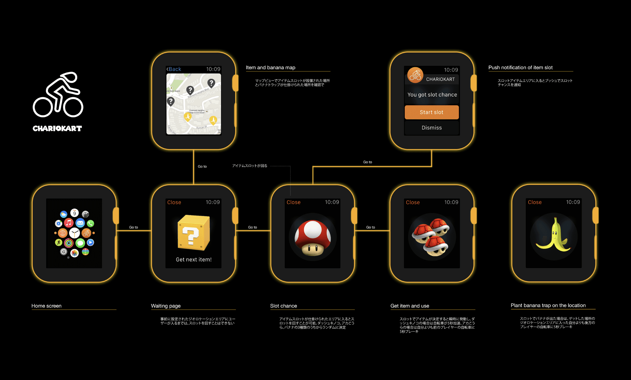 Mario Kart, but real. Chariokart turns your boring bike commute into a battle royale. Your Apple Watch shows the map, you ride through item spots, spin the slot — and suddenly your bike speeds up. Or someone else's brakes kick in. Chaos, but on wheels.